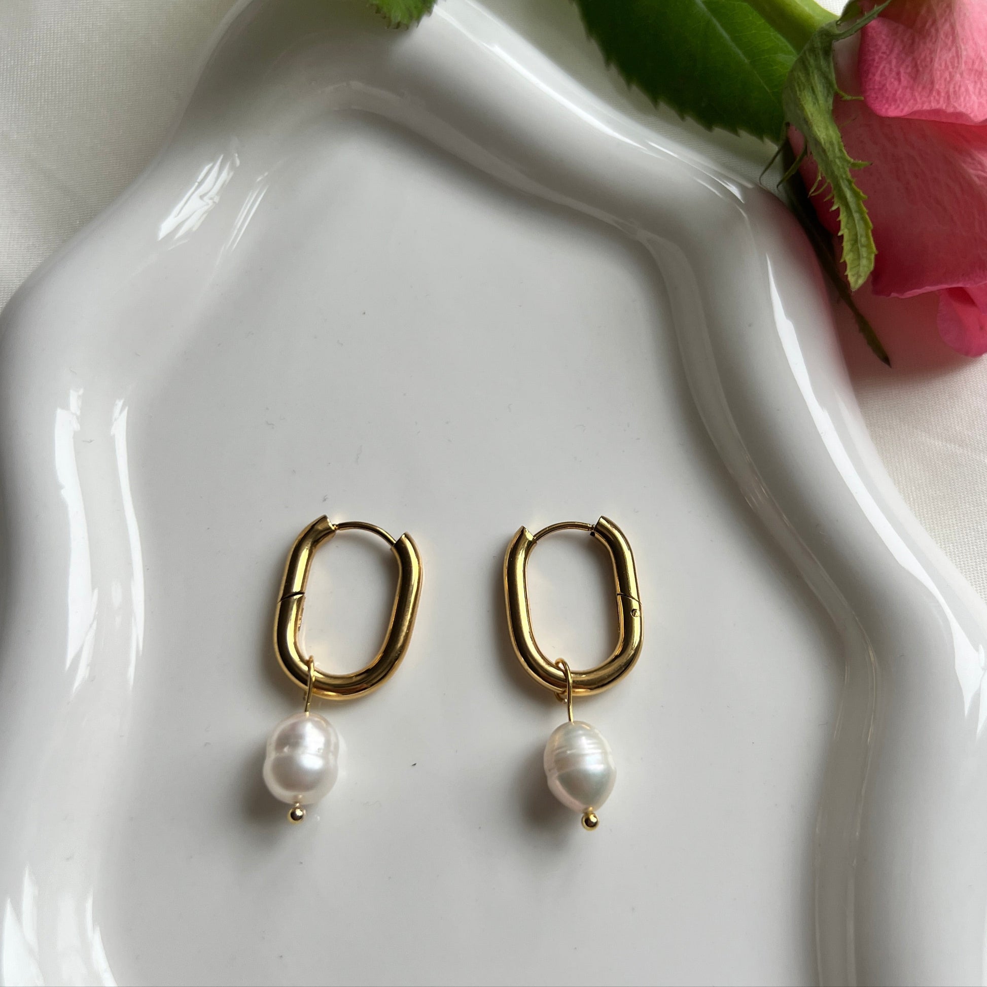 Diese stilvollen, goldenen Vintage Creolen mit 18 Karat wasserdichten Edelstahl vereinen klassische Eleganz mit einem modernen Touch. Die schimmernden Perlenanhänger verleihen jedem Look eine edle Ausstrahlung.